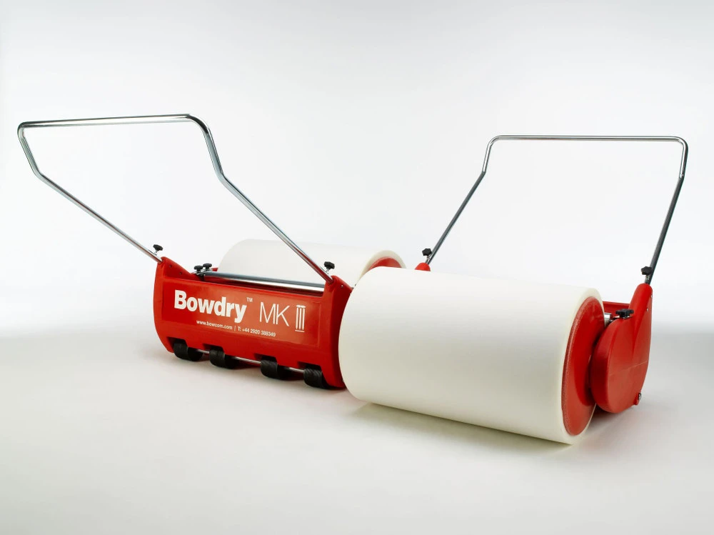 Bowdry MK IIIÂ incorporates a wider, durable foam roller that efficiently absorbs the water and does not damage turf. An integrated storage tank collects the excess water and can then be easily emptied from a valve located on the side panel.